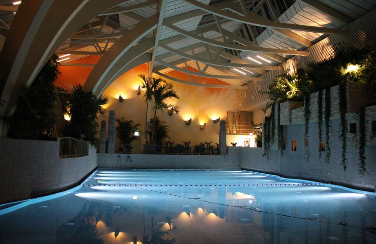 The 500 cottages are built on the south side of a hill side. 70% of the houses enjoy a lake view, the remaining 30% enjoy a forest view. The resort includes a 13.000 square meters Centre and is composed of an Aqua Mundo (including three slides, an indoor wave pool and water playground), 3 restaurants, a supermarket, bowling, café and indoor play areas. Around the Centre several outside leisure activities are offered.